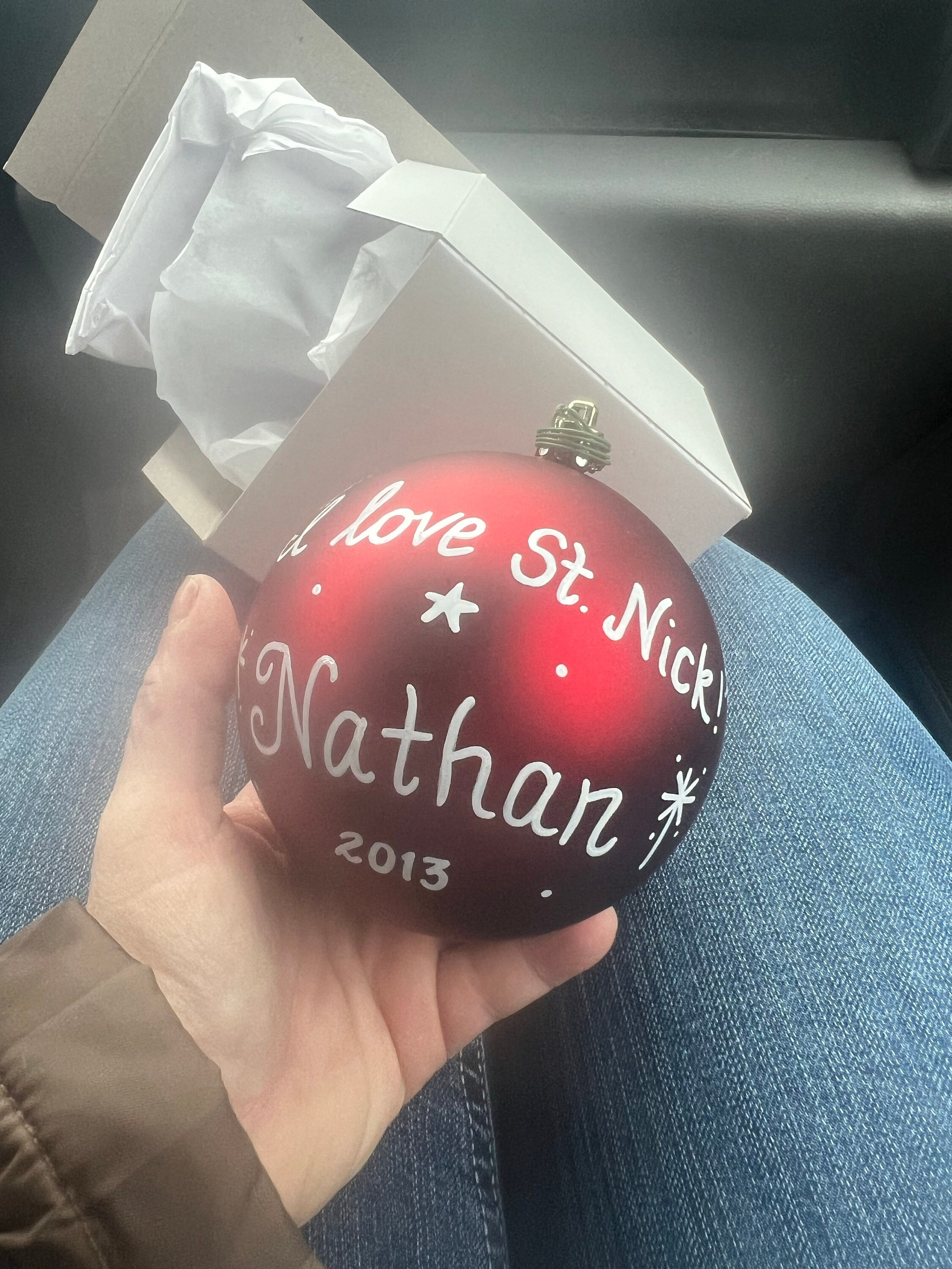 My bulb was absolutely perfect! Every year my son picks out an ornament for the tree and in 2013, he chose a bulb at Bronner’s and had them write I Love St Nick on it. He was 6 at the time. We unpacked our ornaments this year, 2023, and that bulb was shattered. I was able to send pictures of the shattered pieces to Jess and she recreated it exactly! I was so worried it was gone forever - but now it can rejoin the rest of the ornaments!